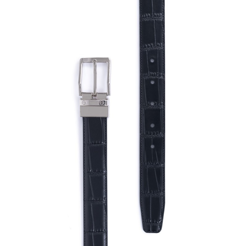 Ανδρική ζώνη της Γαλλικής εταιρείας HEXAGONA κατασκευασμένη από σταμπωτό κροκό μαύρο δέρμα. Η μεταλλική της αγκράφα είναι σε νίκελ χρώμα για ζώνη φάρδους 2,8 εκ, με εύκολο άνοιγμα για την ρύθμιση του μήκους. Το μέγεθος είναι one size στο 1,20μ και κόβεται πολύ εύκολα από τον ίδιο τον πελάτη στο μέγεθός του.