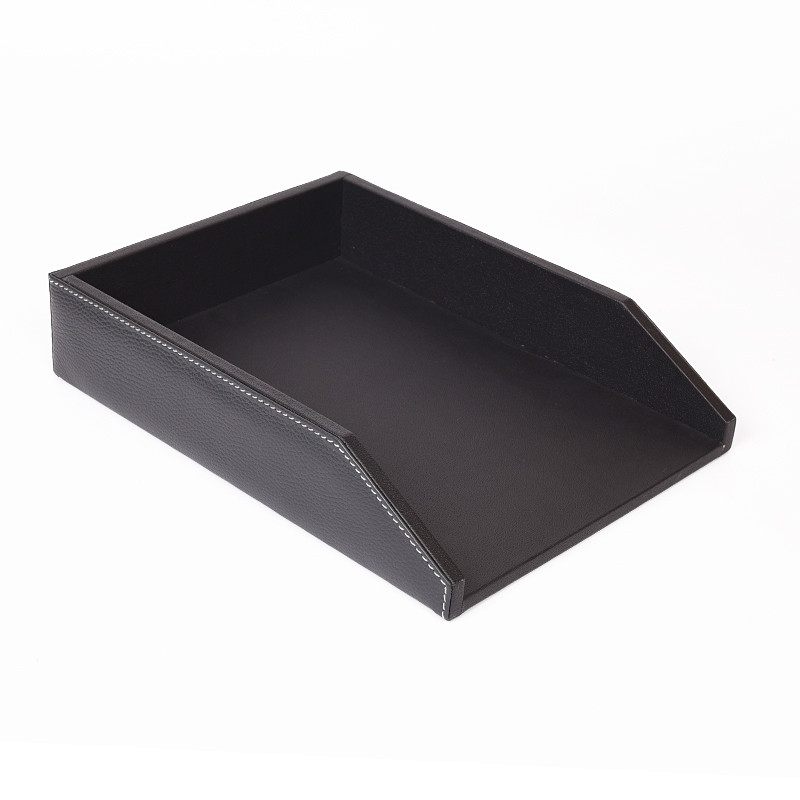 Σετ γραφείου, χειροποίητο από γνήσιο σπυρωτό δέρμα σε γκρί χρώμα. Αποτελείται από πέντε τεμάχια, ένα σουμέν με διπλό διακοσμητικό γαζί σε διαστάσεις 60x40, έναν δίσκο εγγράφων Α4, μια μολυβοθήκη, μια καρτοθήκη και έναν κύβο σημειώσεων. Αυτή η πολυτελής σύνθεση από δερμάτινα αξεσουάρ είναι κατασκευασμένη σύμφωνα με τις απαιτήσεις και τις ανάγκες των πελατών μας