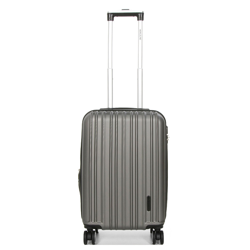Βαλίτσα καμπίνας της Γαλλικής εταιρείας Worldline σε γκρί χρώμα. Κατασκευασμένη από Abs & Polycarbon σε διαστάσεις 55x35x21 συν 3 εκατοστά στο φάρδος εφόσον χρησιμοποιήσετε την προέκταση, έχει βάρος 2,6 κιλά και χωρητικότητα 38 Λίτρα. Έχει την δυνατότητα να μεγαλώσει η χωρητικότητα της κατά 7 λίτρα, χάρη στο φερμουάρ επέκτασης που έχει. Εσωτερικά έχει δυο χώρους που χωρίζουν με διαχωριστικό με μια τσέπη με δίχτυ για να τοποθετήσετε προσωπικά μικροαντικείμενα. Διαθέτει διπλούς τροχούς και κλειδαριά συνδυασμού συμβατή για ταξίδια εκτός Ευρώπης.