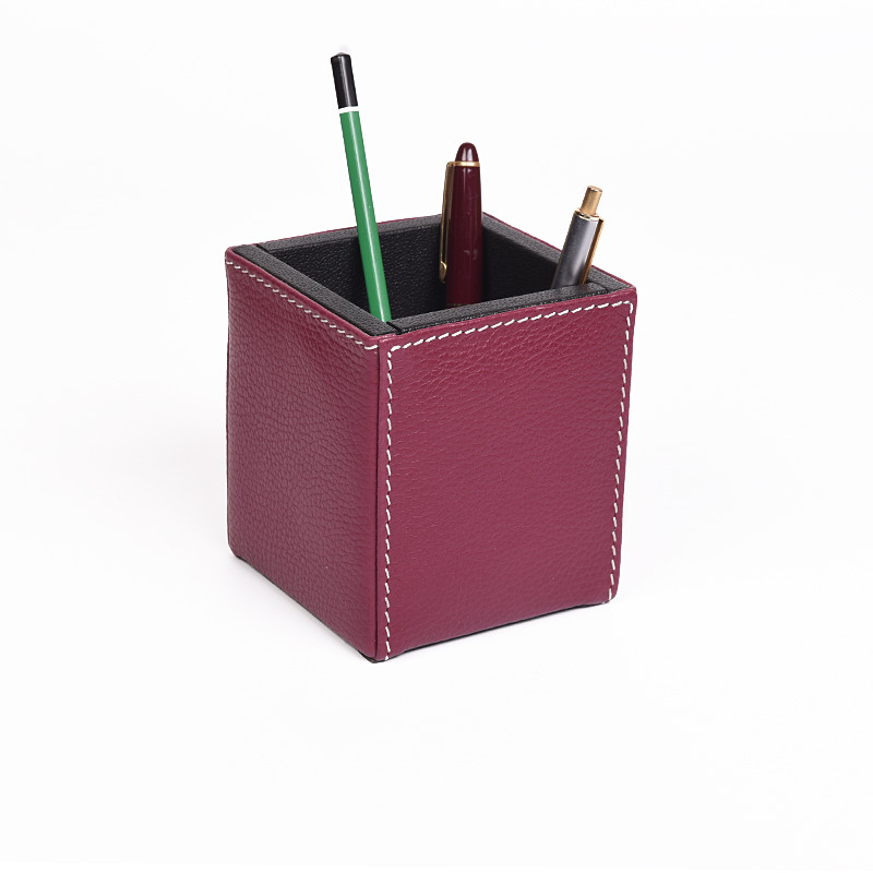 Σετ γραφείου, χειροποίητο σε μπορντό χρώμα. Αποτελείται από επτά τεμάχια, ένα σουμέν με καπάκι για αποθήκευση εγγράφων σε διαστάσεις 54x38, έναν δίσκο εγγράφων Α4, μια μολυβοθήκη, μια καρτοθήκη, έναν κύβο σημειώσεων, μια θήκη για χαρτομάντηλα και έξι σουβέρ με την θήκη τους . Η πολυτελής εμφάνιση που προσφέρει το γνήσιο δέρμα και η έμφαση στην τελειότητα που έχουν δώσει οι τεχνίτες μας είναι ακριβώς αυτό που θα θέλατε για την εικόνα του γραφείου σας.