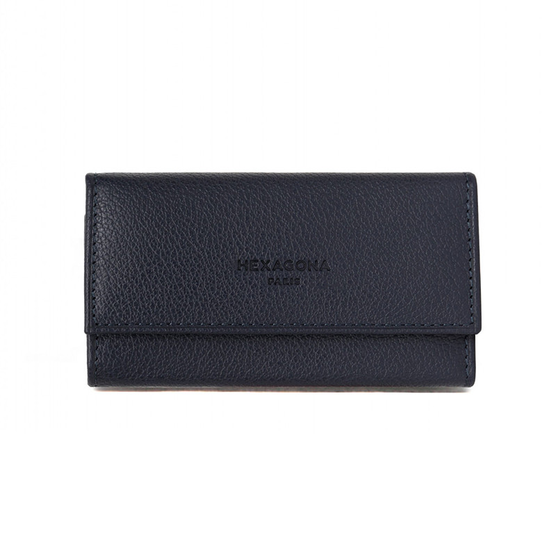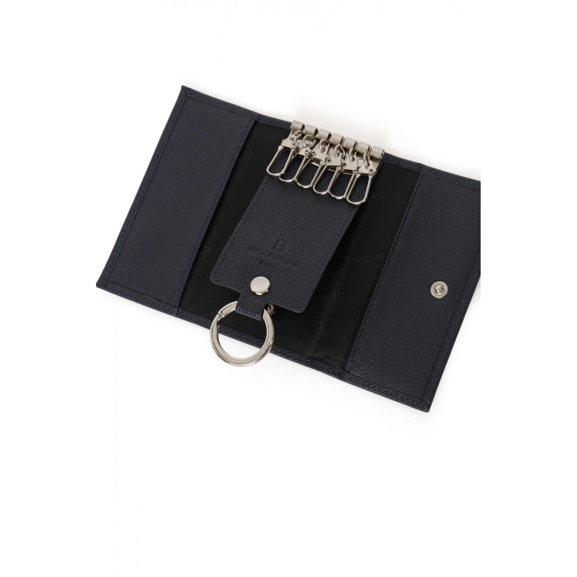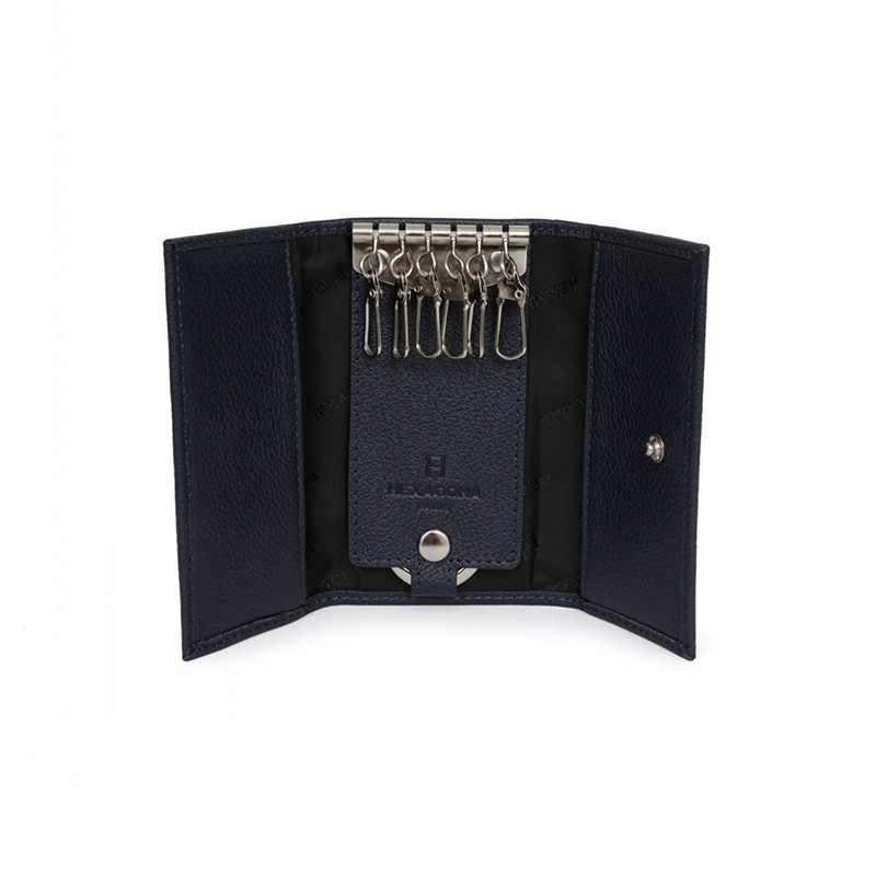 Θήκη κλειδιών από γνήσιο δέρμα της Γαλλικής εταιρείας Hexagona σέ μπλέ σκούρο χρώμα. Διαθέτει έξι θέσεις για τα κλειδιά του σπιτιού σας, και έναν ξεχωριστό κρίκο που μπορείτε να τοποθετήσετε τα κλειδιά του αυτοκινήτου ή άλλα που θέλετε να ξεχωρίσετε. Ένας απλός και κομψός τρόπος για να κρατήσετε τα κλειδιά σας ασφαλή.