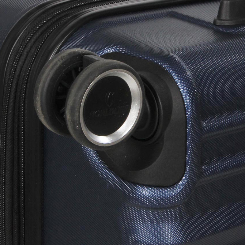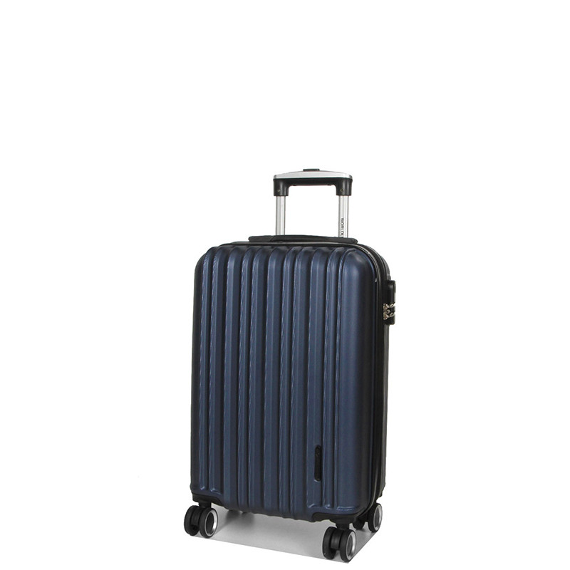 Βαλίτσα καμπίνας της Γαλλικής εταιρείας Worldline σε μπλέ χρώμα. Κατασκευασμένη από Abs & Polycarbon σε διαστάσεις 55x35x21 συν 3 εκατοστά στο φάρδος εφόσον χρησιμοποιήσετε την προέκταση, έχει βάρος 2,6 κιλά και χωρητικότητα 38 Λίτρα. Έχει την δυνατότητα να μεγαλώσει η χωρητικότητα της κατά 7 λίτρα, χάρη στο φερμουάρ επέκτασης που έχει. Εσωτερικά έχει δυο χώρους που χωρίζουν με διαχωριστικό με μια τσέπη με δίχτυ για να τοποθετήσετε προσωπικά μικροαντικείμενα. Διαθέτει διπλούς τροχούς και κλειδαριά συνδυασμού συμβατή για ταξίδια εκτός Ευρώπης.