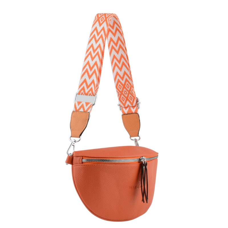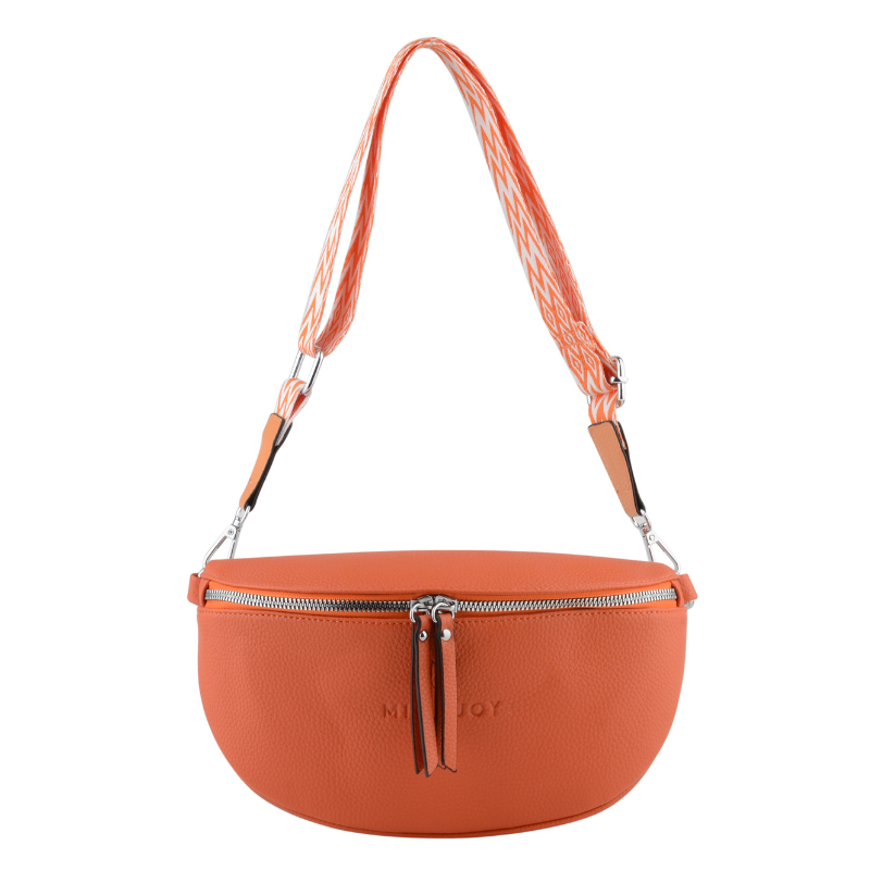 Τσάντα χιαστί της Γαλλικής εταιρείας Mia Joy σε πορτοκαλί χρώμα. Είναι κατασκευασμένη από συνθετικό υλικό και είναι ιδανική για καθημερινή χρήση. Διαθέτει ένα κομψό λουρί από ιμάντα που προσθέτει μια πινελιά στυλ, ενώ το ελαφρύ της βάρος την καθιστά άνετη στη χρήση. Διαθέτει έναν χώρο, καθώς και μια εσωτερική τσέπη που κλείνουν με φερμουάρ. Έχει επίσης μια εξωτερική τσέπη που κλείνει επίσης με φερμουάρ στο πίσω μέρος για εύκολη πρόσβαση σε απαραίτητα μικροαντικείμενα. Αυτή η τσάντα είναι ιδανική για γυναίκες που αναζητούν μια κομψή και πρακτική τσάντα για καθημερινή χρήση. Μπορεί να φορεθεί με διάφορους τρόπους, όπως στον ώμο ή χιαστί.