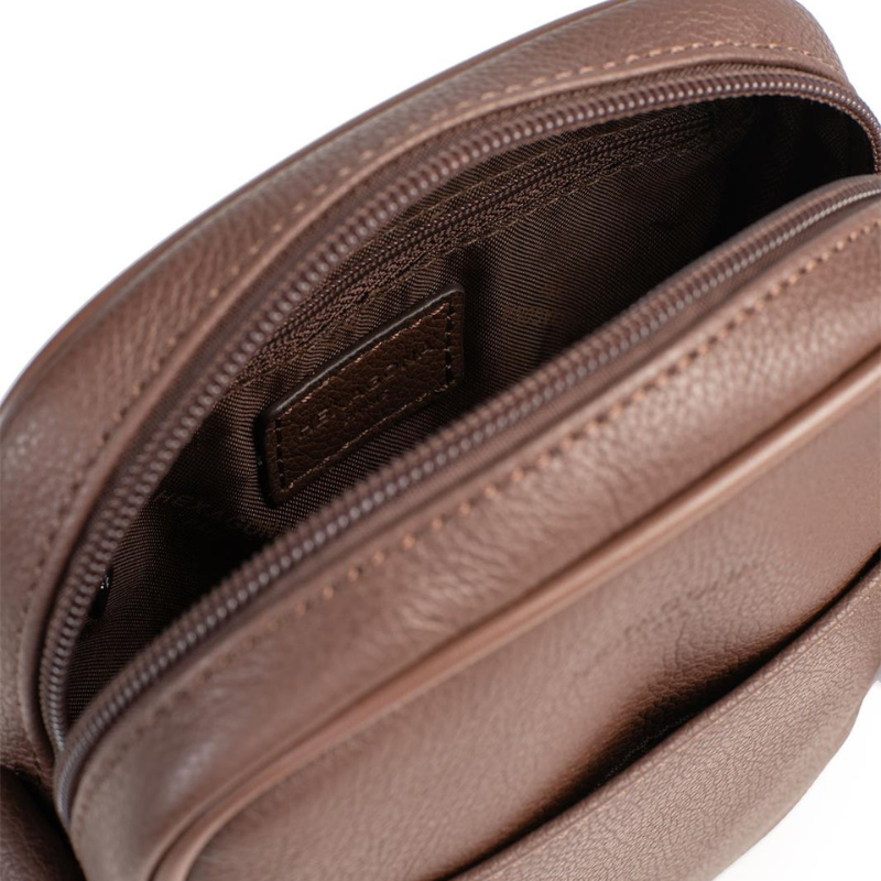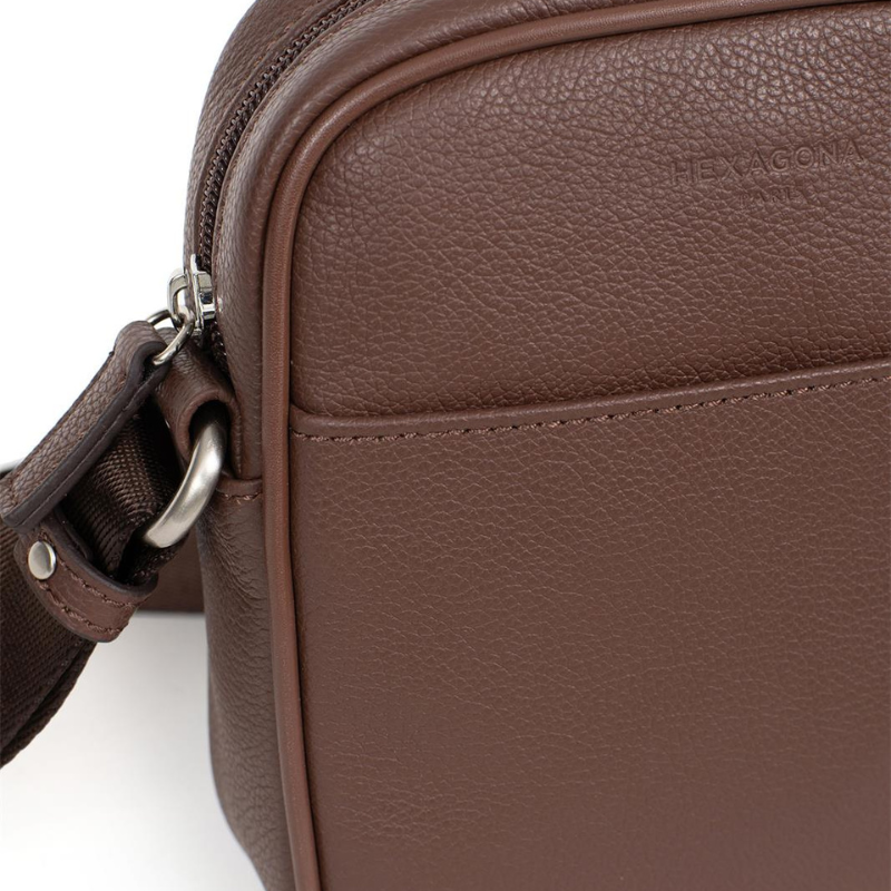 Το ανδρικό τσαντάκι χιαστί της Γαλλικής εταιρείας HEXAGONA είναι η ιδανική επιλογή για τον σύγχρονο άνδρα που αναζητά κομψότητα και πρακτικότητα. Κατασκευασμένο από γνήσιο δέρμα σε  καφέ σοκολά χρώμα, προσφέρει στυλ και ανθεκτικότητα. Διαθέτει έναν κύριο χώρο που κλείνει με φερμουάρ, προσφέροντας ασφάλεια στα προσωπικά σας αντικείμενα. Στο εσωτερικό του υπάρχει μια βοηθητική τσέπη με φερμουάρ, καθώς και μια επιπλέον τσέπη για μικροαντικείμενα. Εξωτερικά, μια ελεύθερη τσέπη επιτρέπει γρήγορη και εύκολη πρόσβαση στα απαραίτητα αντικείμενα. Συνδυάζοντας κομψότητα, λειτουργικότητα και άριστη ποιότητα κατασκευής, το χιαστί τσαντάκι αποτελεί ένα απαραίτητο αξεσουάρ για κάθε άνδρα που επιθυμεί οργάνωση και στυλ σε κάθε περίσταση.