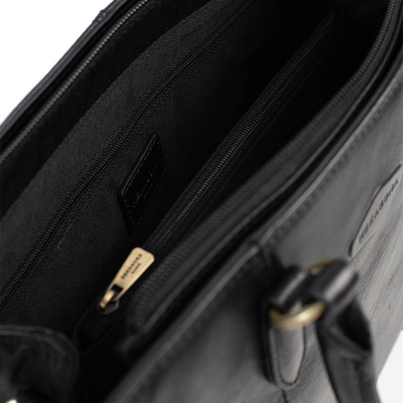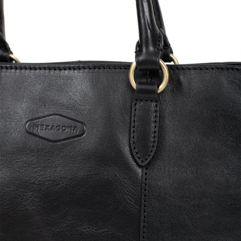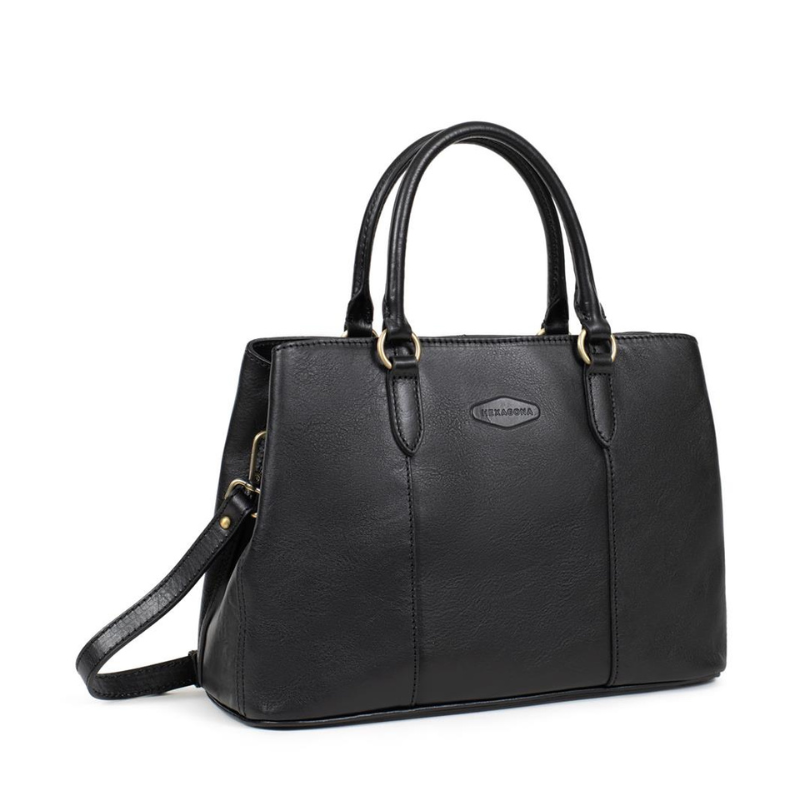 Αναδείξτε το στυλ σας με αυτή την κομψή τσάντα χειρός, κατασκευασμένη από την Γαλλική εταιρεία Hexagonaαπο γνήσιο δέρμα υψηλής ποιότητας σε μαύρο χρώμα. Ο εσωτερικός της χώρος είναι σχεδιασμένος για μέγιστη οργάνωση, διαθέτοντας δύο ξεχωριστούς χώρους που χωρίζονται από μεσαίο χώρισμα-τσέπη με φερμουάρ, επιπλέον εσωτερική τσέπη με φερμουάρ καθώς και θήκες για κινητό τηλέφωνο και μικροαντικείμενα.