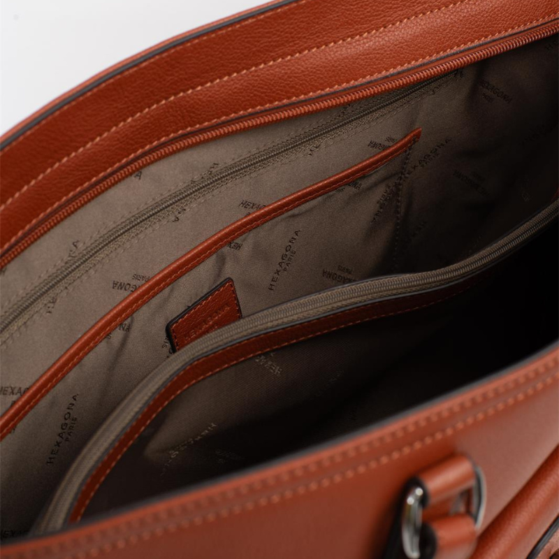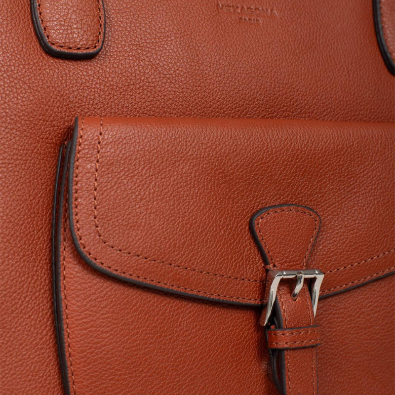 Κομψή και πρακτική τσάντα ώμου κατασκευασμένη από γνήσιο δέρμα της Γαλλικής εταιρείας Hexagonaσε εκάι χρώμα. Ιδανική για καθημερινή χρήση στο γραφείο ή στις μετακινήσεις σας. Σχεδιασμένη ώστε να χωράει άνετα έγγραφα και φακέλους μεγέθους Α4, προσφέρει οργανωμένο εσωτερικό με δύο μεγάλους χώρους, οι οποίοι χωρίζονται από μία ευρύχωρη τσέπη-χώρισμα με φερμουάρ ιδανική για να χωρέσει ένα μεγάλο πορτοφόλι. Διαθέτει επίσης δύο πίσω εσωτερικές τσέπες, εκ των οποίων η μία ασφαλίζει με φερμουάρ, καθώς και θήκες για κινητό τηλέφωνο ή άλλα μικροαντικείμενα. Εξωτερικά, η τσάντα ενισχύεται με δύο επιπλέον τσέπες: μία μπροστά με καπάκι και μία πίσω με φερμουάρ για αντικείμενα που θέλετε να έχετε άμεση πρόσβαση. Ένα αξεσουάρ που συνδυάζει κομψότητα, άνεση και λειτουργικότητα για να έχετε πάντα μαζί σας όλα τα απαραίτητα.