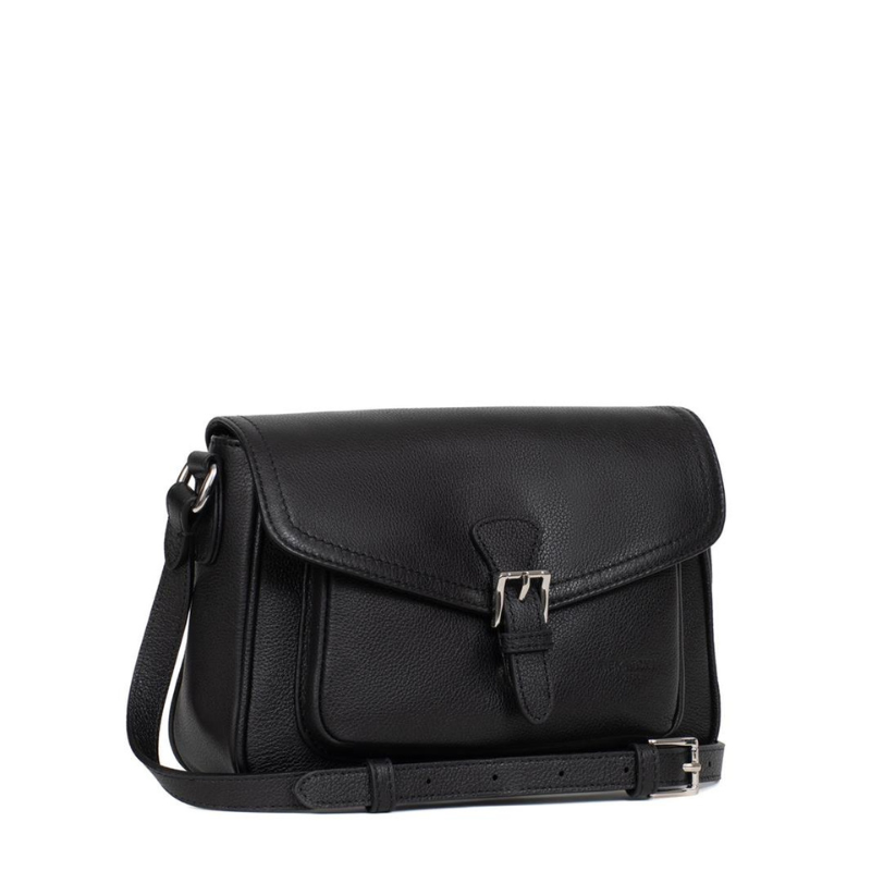 Κομψή και πρακτική τσάντα ταχυδρόμου κατασκευασμένη από την Γαλλική εταιρεία Hexagona από γνήσιο δέρμα σε μαύρο χρώμα. Ασφαλίζει με καπάκι και φερμουάρ, προσφέροντας σιγουριά και άνεση στην καθημερινή χρήση. Στο εσωτερικό της διαθέτει έναν ευρύχωρο ενιαίο χώρο, μια βοηθητική τσέπη με φερμουάρ και θήκη για κινητό ή μικροαντικείμενα. Εξωτερικά, περιλαμβάνει τσέπη με φερμουάρ στο πίσω μέρος καθώς και μία επιπλέον ελεύθερη τσέπη κάτω από το καπάκι, για εύκολη πρόσβαση σε αντικείμενα που χρησιμοποιήται συχνά. Το μακρύ, ρυθμιζόμενο λουρί από δέρμα, σας επιτρέπει να φοριέται άνετα στον ώμο ή χιαστί, προσαρμοζόμενη στο στυλ και τις ανάγκες σας. Μια ιδανική επιλογή για όσους αναζητούν λειτουργικότητα, κομψότητα και αντοχή στην καθημερινότητα.