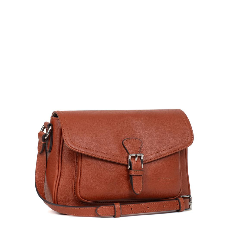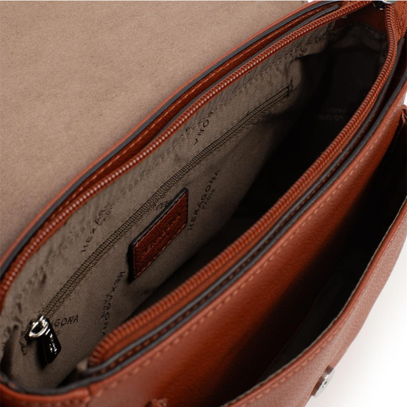 Κομψή και πρακτική τσάντα ταχυδρόμου κατασκευασμένη από την Γαλλική εταιρεία Hexagona από γνήσιο δέρμα σε εκάι χρώμα. Ασφαλίζει με καπάκι και φερμουάρ, προσφέροντας σιγουριά και άνεση στην καθημερινή χρήση. Στο εσωτερικό της διαθέτει έναν ευρύχωρο ενιαίο χώρο, μια βοηθητική τσέπη με φερμουάρ και θήκη για κινητό ή μικροαντικείμενα. Εξωτερικά, περιλαμβάνει τσέπη με φερμουάρ στο πίσω μέρος καθώς και μία επιπλέον ελεύθερη τσέπη κάτω από το καπάκι, για εύκολη πρόσβαση σε αντικείμενα που χρησιμοποιήται συχνά. Το μακρύ, ρυθμιζόμενο λουρί από δέρμα, σας επιτρέπει να φοριέται άνετα στον ώμο ή χιαστί, προσαρμοζόμενη στο στυλ και τις ανάγκες σας. Μια ιδανική επιλογή για όσους αναζητούν λειτουργικότητα, κομψότητα και αντοχή στην καθημερινότητα.