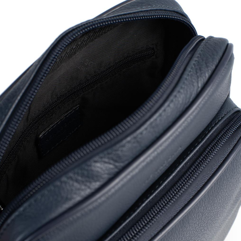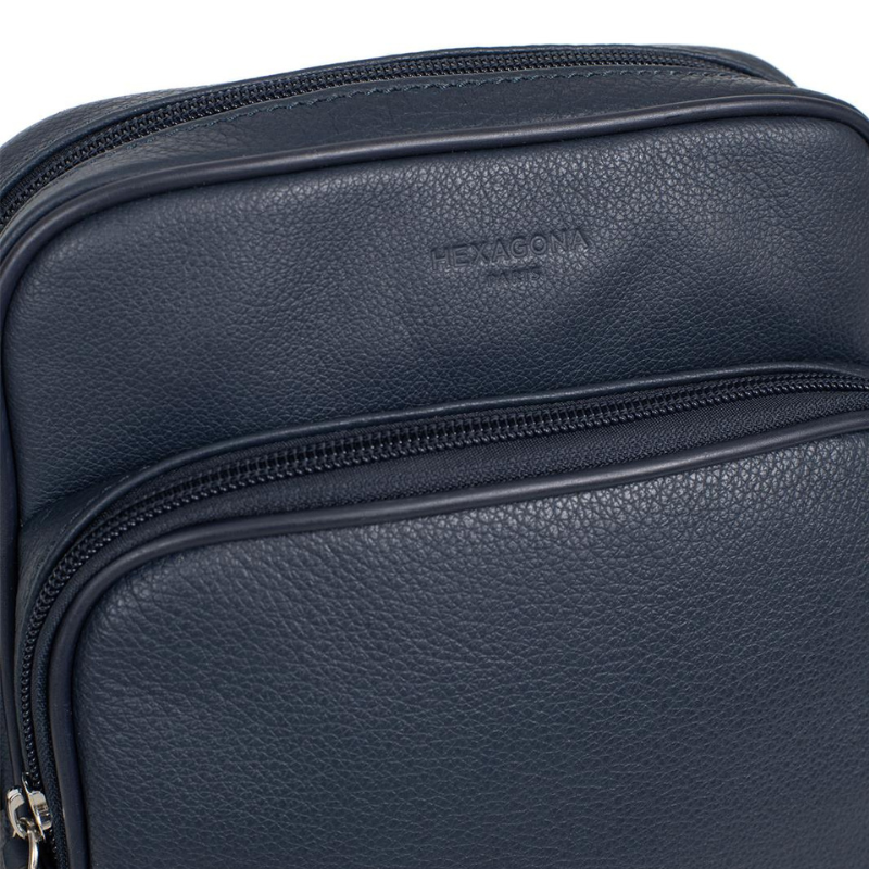 Κομψή και πρακτική ανδρική τσάντα, κατασκευασμένη από την Γαλλική εταιρεία Hexagonaαπό γνήσιο δέρμα υψηλής ποιότητας σε μπλέ χρώμα. Διαθέτει έναν ευρύχωρο κεντρικό χώρο για την ασφαλή μεταφορά των απαραίτητων αντικειμένων, καθώς και έναν μικρότερο εξωτερικό χώρο στο μπροστινό μέρος για άμεση πρόσβαση σε ό,τι χρειάζεστε άμεσα. Στο εσωτερικό θα βρείτε βοηθητική τσέπη που κλείνει με φερμουάρ, καθώς και θήκες για κινητό τηλέφωνο ή άλλα μικροαντικείμενα, ώστε να παραμένετε πάντα οργανωμένοι. Ιδανική επιλογή για καθημερινή χρήση, συνδυάζει στυλ με λειτουργικότητα.