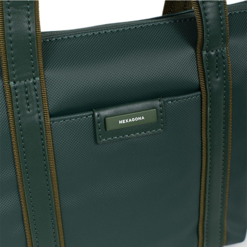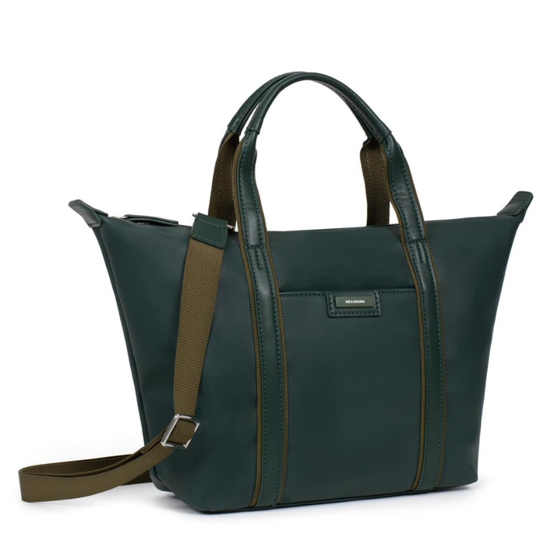 Η γυναικεία τσάντα χειρός σε μεσαίο μέγεθος της Γαλλικής εταιρείας Hexagona συνδυάζει με μοναδικό τρόπο την κομψότητα με την καθημερινή πρακτικότητα. Σχεδιασμένη για τη σύγχρονη, δραστήρια γυναίκα, προσφέρει άνεση, οργάνωση και απαράμιλλο στυλ. Στο εσωτερικό της θα βρείτε έναν ενιαίο χώρο με πρακτικές θήκες για κινητό, στυλό ή άλλα μικροαντικείμενα, καθώς και μια εσωτερική τσέπη με φερμουάρ. Η εξωτερική πίσω τσέπη με φερμουάρ και η πρόσθετη εμπρόσθια θήκη προσφέρουν εύκολη και γρήγορη πρόσβαση στα προσωπικά σας αντικείμενα. Κατασκευασμένη από συνθετικό υλικό σε χακί χρώμα, σχεδιασμένη σε μοντέρνο σπόρ σχέδιο, αποπνέει φινέτσα και ευελιξία, καθιστώντας την ιδανική για κάθε στιγμή της ημέρας. . Διαθέτει μακρύ αποσπώμενο λουρί για κράτημα στον ώμο ή χιαστί. Η τσάντα της Hexagona δεν είναι απλώς ένα αξεσουάρ· είναι η τέλεια ισορροπία ανάμεσα στην κομψότητα, τη λειτουργικότητα και την καθημερινή άνεση.