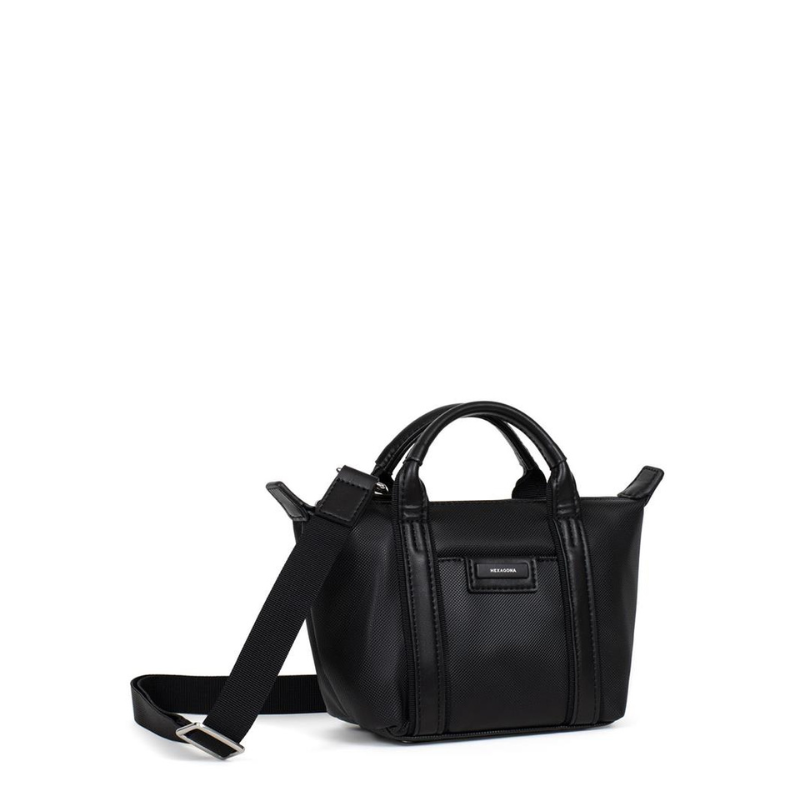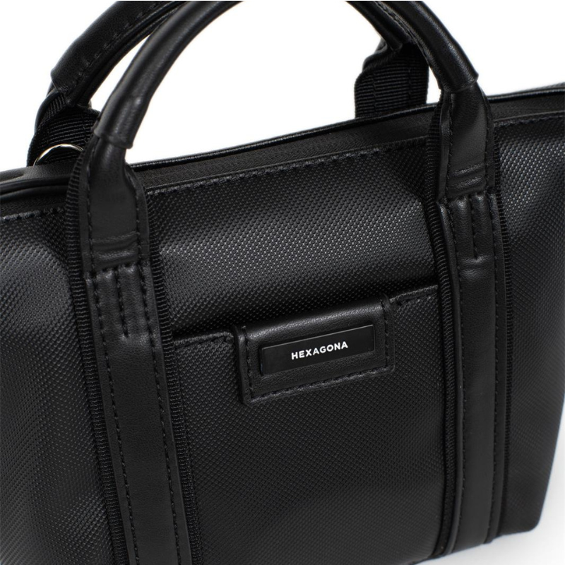 Η γυναικεία τσάντα χειρός σε μικρό μέγεθος με διαστάσεις 24x8x15 της Γαλλικής εταιρείας Hexagona συνδυάζει με μοναδικό τρόπο την κομψότητα με την καθημερινή πρακτικότητα. Στο εσωτερικό της θα βρείτε έναν χώρο με μια θήκη για κινητό τηλέφωνο και μια μικρή τσέπη με φερμουάρ. Εξωτερικά διαθέτει δυο μικρές τσέπες μπροστά και πίσω για μικροαντικείμενα. Κατασκευασμένη από συνθετικόυλικό σε μαύρο χρώμα, σχεδιασμένη σε μοντέρνο σπόρ σχέδιο, αποπνέει φινέτσα και ευελιξία, καθιστώντας την ιδανική για κάθε στιγμή της ημέρας. Διαθέτει μακρύ αποσπώμενο λουρί για κράτημα στον ώμο ή χιαστί.