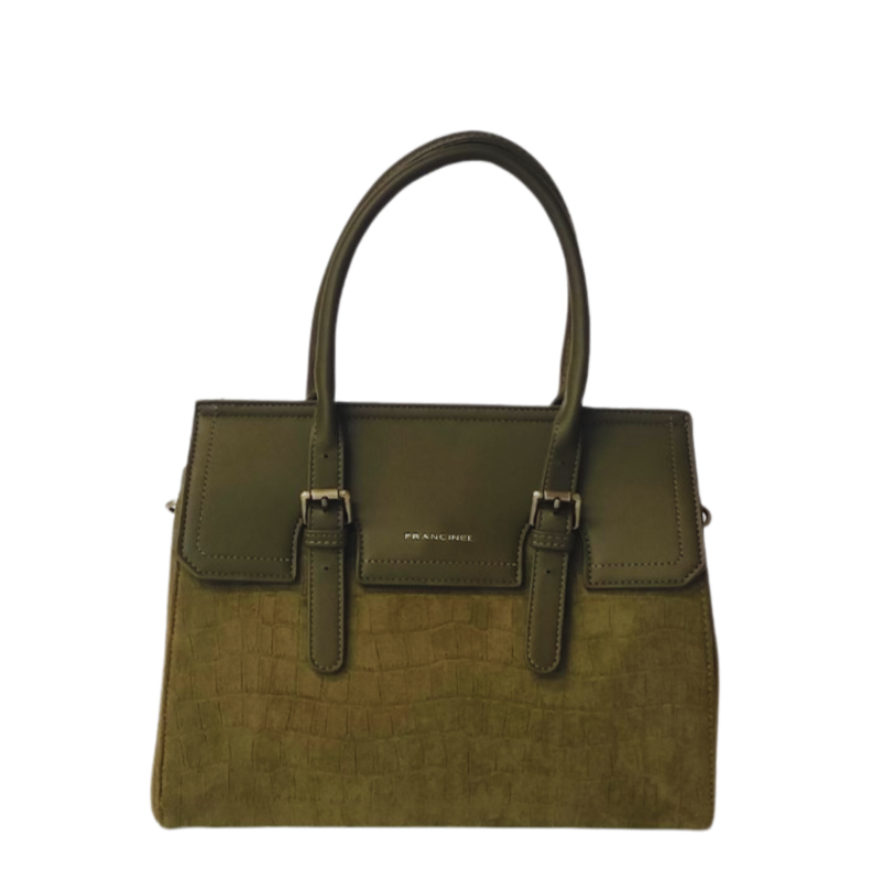 Ανακάλυψε τη γυναικεία τσάντα χειρός της Γαλλικής εταιρείας Francinel που συνδυάζει άψογα στυλ και λειτουργικότητα! Κατασκευασμένη από συνθετικό υλικό, σε υπέροχο χακί χρώμα. Κλείνει με καπάκι και φερμουάρ για ασφάλεια, ενώ το ευρύχωρο εσωτερικό της διαθέτει διαχωριστικό για καλύτερη οργάνωση, μια μικρή τσέπη με φερμουάρ και θήκη για κινητό τηλέφωνο. Το ρυθμιζόμενο λουρί επιτρέπει να τη φορέσεις στον ώμο ή χιαστί, προσφέροντας άνεση σε κάθε περίσταση. Ένα must-have αξεσουάρ για το γραφείο, τη βόλτα ή το ταξίδι σου!