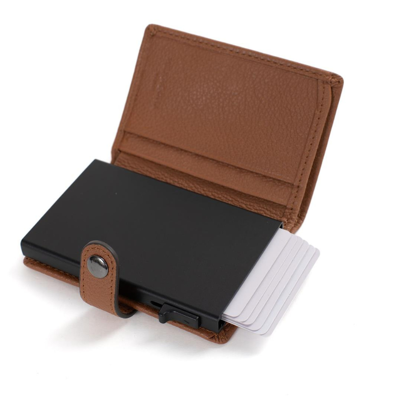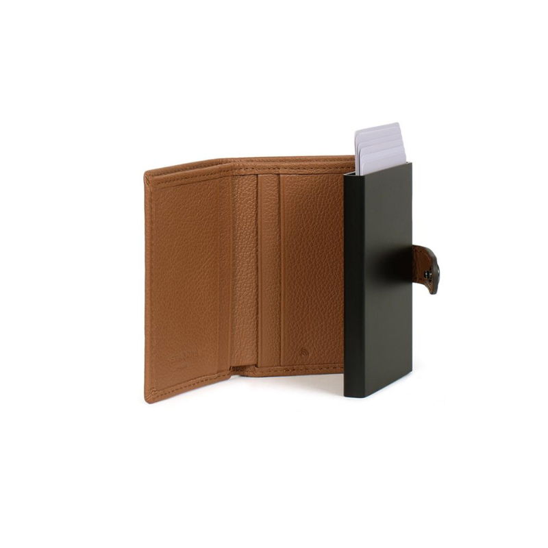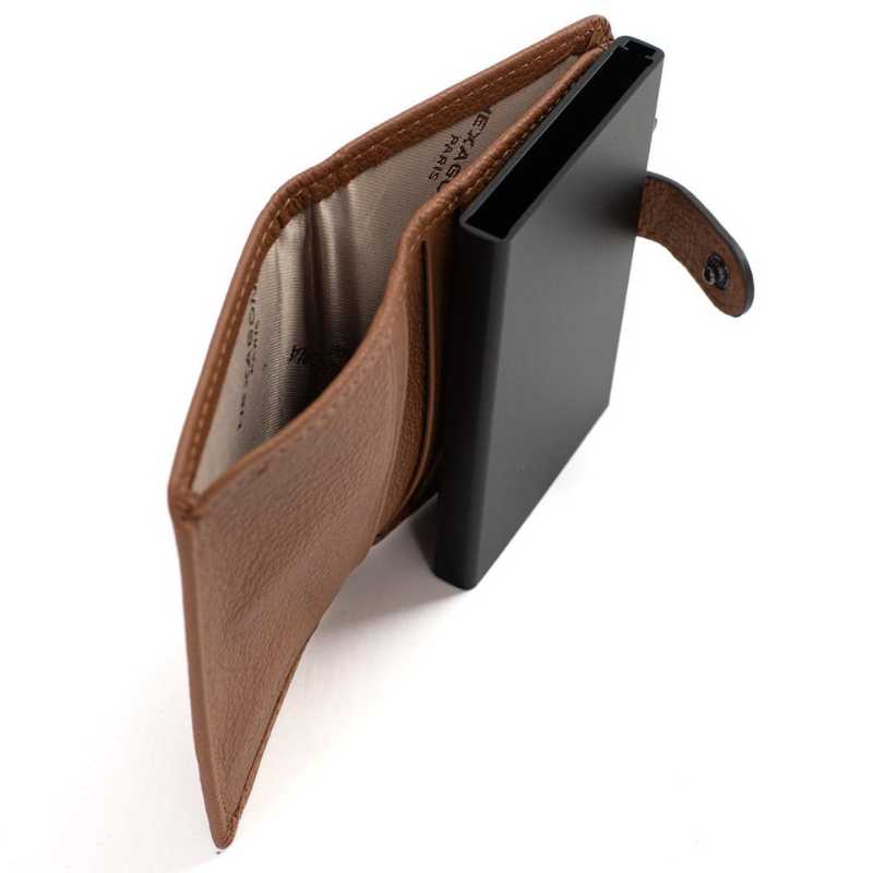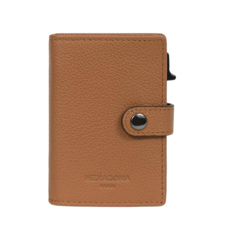 Μια κομψή και πρακτική καρτοθήκη κατασκευασμένη από την Γαλλική εταιρεία Hexagona από υψηλής ποιότητας δέρμα σε ταμπά χρώμα, σχεδιασμένη για να συνδυάζει στυλ και λειτουργικότητα. Διαθέτει μηχανισμό Slide που χωρά έως 5 κάρτες, προσφέροντας εύκολη και άμεση πρόσβαση με ένα απλό πάτημα. Επιπλέον, η καρτοθήκη περιλαμβάνει 4 θήκες για κάρτες, καθώς και μια ευρύχωρη θήκη για χαρτονομίσματα.  Η ενσωματωμένη προστασία RFID εξασφαλίζει την ασφάλεια των καρτών σας από μη εξουσιοδοτημένη ασύρματη σάρωση. Με μοντέρνο σχεδιασμό, μικρό μέγεθος και υψηλή λειτουργικότητα, αποτελεί την ιδανική επιλογή για όσους αναζητούν έναν συνδυασμό πρακτικότητας, ασφάλειας και κομψότητας.