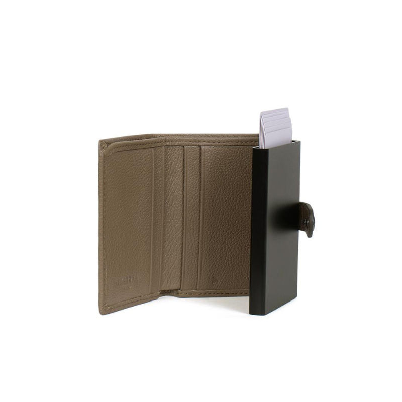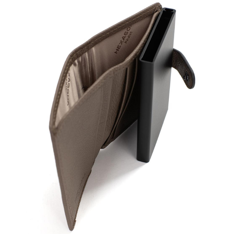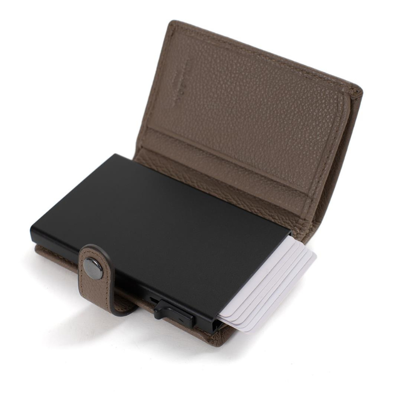 Μια κομψή και πρακτική καρτοθήκη κατασκευασμένη από την Γαλλική εταιρεία Hexagona από υψηλής ποιότητας δέρμα σε πούρο χρώμα, σχεδιασμένη για να συνδυάζει στυλ και λειτουργικότητα. Διαθέτει μηχανισμό Slide που χωρά έως 5 κάρτες, προσφέροντας εύκολη και άμεση πρόσβαση με ένα απλό πάτημα. Επιπλέον, η καρτοθήκη περιλαμβάνει 4 θήκες για κάρτες, καθώς και μια ευρύχωρη θήκη για χαρτονομίσματα. Η ενσωματωμένη προστασία RFID εξασφαλίζει την ασφάλεια των καρτών σας από μη εξουσιοδοτημένη ασύρματη σάρωση. Με μοντέρνο σχεδιασμό, μικρό μέγεθος και υψηλή λειτουργικότητα, αποτελεί την ιδανική επιλογή για όσους αναζητούν έναν συνδυασμό πρακτικότητας, ασφάλειας και κομψότητας.