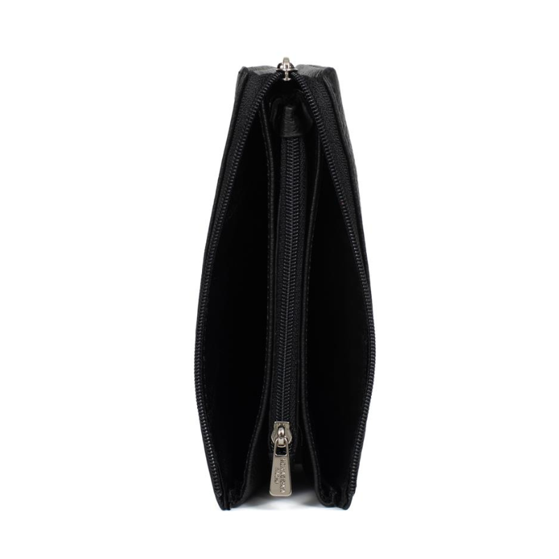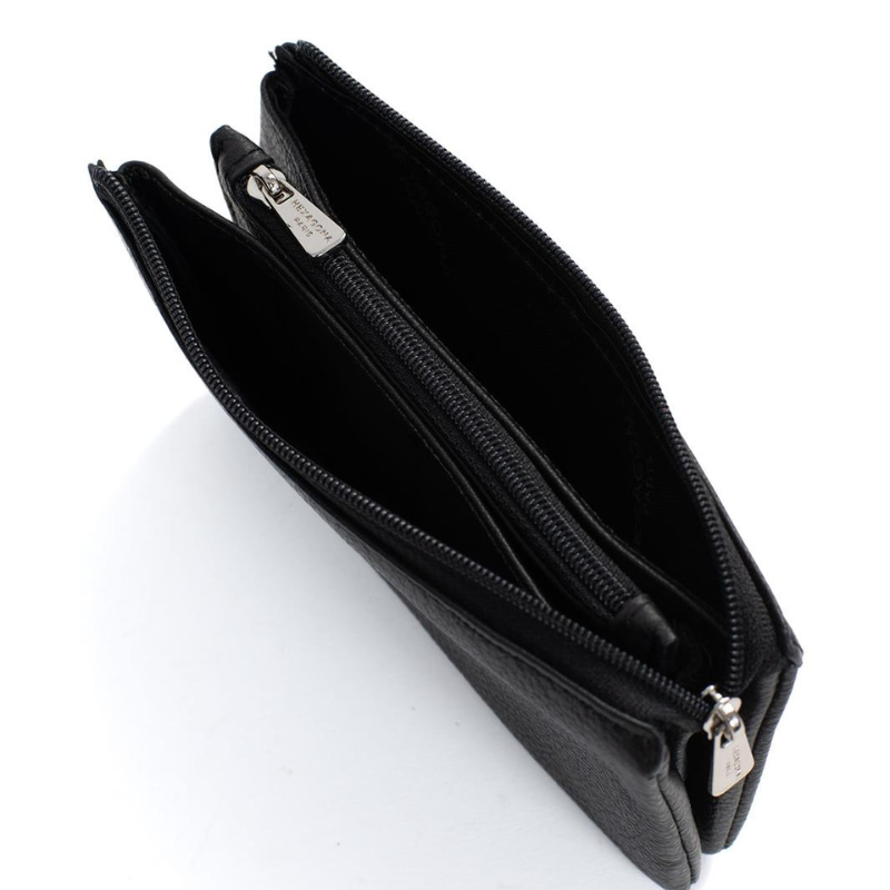 Αυτό το πρακτικό γυναικείο πορτοφόλι μικρού μεγέθους είναι κατασκευασμένο από την Γαλλική εταιρεία Hexagona σε γνήσιο μαύρο δέρμα. Παρά τις μικρές του διαστάσεις, προσφέρει άριστη οργάνωση, το πορτοφόλι ασφαλίζει με φερμουάρ για μέγιστη προστασία. Εσωτερικά, διαθέτει στο κέντρο μια κερματοθήκη που κλείνει επίσης με φερμουάρ, ενώ συμπληρώνεται από δύο τσεπάκια ιδανικά για κάρτες και δύο πρόσθετες θέσεις κατάλληλες για τη φύλαξη χαρτονομισμάτων και αποδείξεων. Είναι το ιδανικό αξεσουάρ για να διατηρήσετε τα χρήματα και τις κάρτες σας ασφαλή ακόμα και στα πιο μικρά σας τσαντάκια.
