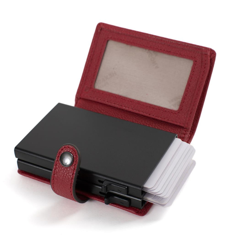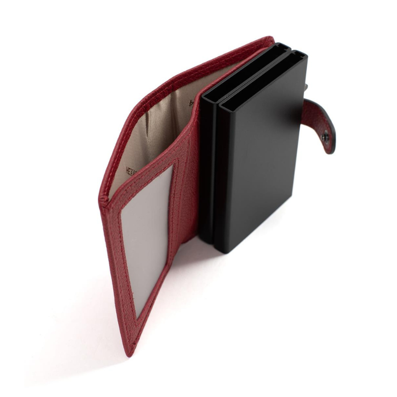 Η κομψή αυτή καρτοθήκη της Γαλλικής εταιρείας Hexagona είναι κατασκευασμένη από υψηλής ποιότητας γνήσιο δέρμα σε κόκκινο σκούρο χρώμα. Εξοπλισμένη με διπλό μηχανισμό Slide, επιτρέπει την άμεση και εύκολη ανάδυση των καρτών με ένα μόνο κλικ, εξασφαλίζοντας πρακτικότητα και γρήγορη πρόσβαση. Ο κάθε μηχανισμός slide έχει χωρητικότητα 5 θέσεις για κάρτες Για την προστασία των προσωπικών σου δεδομένων, διαθέτει ενσωματωμένη τεχνολογία RFID blocking, η οποία εμποδίζει τη μη εξουσιοδοτημένη ασύρματη σάρωση των καρτών σου, προσφέροντας επιπλέον ασφάλεια σε κάθε χρήση. Επιπλέον, περιλαμβάνει μια διάφανη θήκη στο μέγεθος της νέας αστυνομικής ταυτότητας, επιτρέποντας να την έχεις πάντα μαζί σου με ασφάλεια και άνεση. Η καρτοθήκη συμπληρώνεται από μια πρακτική θήκη για χαρτονομίσματα, ώστε να μεταφέρεις συγκεντρωμένα όλα τα απαραίτητα χωρίς να χρειάζεσαι επιπλέον πορτοφόλι. Με μοντέρνο σχεδιασμό, μικρό μέγεθος και υψηλή λειτουργικότητα, αποτελεί την ιδανική επιλογή για όσους αναζητούν έναν συνδυασμό πρακτικότητας, ασφάλειας και κομψότητας.