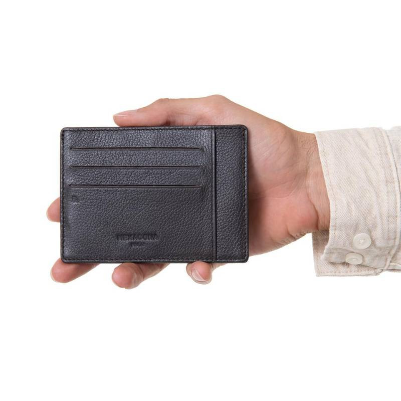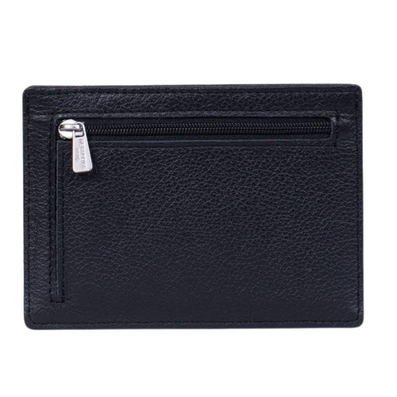 Καρτοθήκη από την Γαλλική εταιρεία Hexagona σε μαύρο χρώμα, σχεδιασμένη για άνετη και ασφαλή καθημερινή χρήση. Κατασκευασμένη από γνήσιο δέρμα, συνδυάζει κομψότητα και λειτουργικότητα σε μικρό μέγεθος. Διαθέτει, 3 θήκες για κάρτες, 2 τσέπες για ταυτότητα διαστάσεων 11 x 6,5 εκ. και άδεια οδήγησης, κερματοθήκη με φερμουάρ στο πίσω μέρος για εύκολη πρόσβαση. Ο πρακτικός σχεδιασμός καθιστά τη θήκη ιδανική επιλογή τόσο για προσωπική χρήση όσο και για δώρο. Η προηγμένη τεχνολογία προστασίας RFID δημιουργεί μια ασπίδα γύρω από τις κάρτες σας, εμποδίζοντας την ανάγνωση των δεδομένων τους από μη εξουσιοδοτημένα άτομα.
