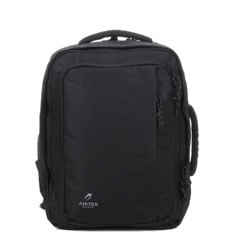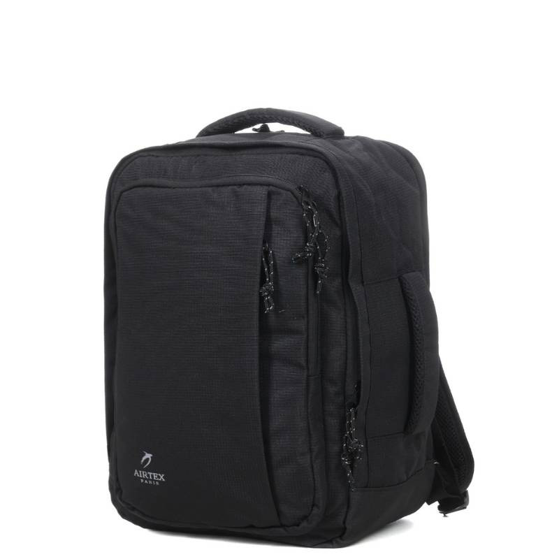 Σακίδιο πλάτης της Γαλλικής εταιρείας Airtexσε μαύρο χρώμα, είναι ιδανικό για ταξίδια με αεροπλάνο, να το έχετε μαζί σας στην καμπίνα, για ολιγοήμερα ταξίδια άλλα και για καθημερινή χρήση. Διαθέτει ειδικό ενισχυμένο χώρο για laptop έως 15 ίντσες και έναν χώρο για tablet. Έπισης έχει ξεχωριστό χώρο με ιμάντες για ρούχα. , διαθέτει μια πλαϊνή τσέπη από πλέγμα για ένα μπουκάλι νερού ή μια μικρή ομπρέλα. Επίσης έχει μια κάθετη μπροστινή τσέπη για αντικείμενα που θέλετε να έχετε άμεση πρόσβαση. Κατασκευασμένο από ανθεκτικό και ελαφρύ ύφασμα πολυεστέρα, προσφέρει άνεση στη μεταφορά με ενισχυμένους ιμάντες και πολλαπλές λαβές. Επιπλέον, το συμπαγές μέγεθός της είναι αποδεκτό ως χειραποσκευή από τις περισσότερες αεροπορικές εταιρείες και μπορεί ακόμη να χρησιμοποιηθεί ως αποσκευή κάτω από το κάθισμα στην EasyJet, ενώ περιλαμβάνει πρακτικές τσέπες για άριστη οργάνωση και εξάρτημα για μεταφορά σε βαλίτσα τρόλεϊ για εύκολη μετακίνηση.