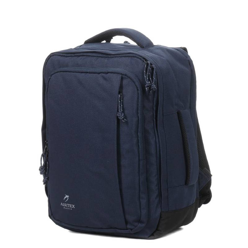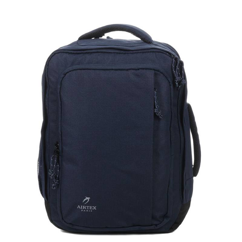 Σακίδιο πλάτης της Γαλλικής εταιρείας Airtexσε μπλέ χρώμα, είναι ιδανικό για ταξίδια με αεροπλάνο, να το έχετε μαζί σας στην καμπίνα, για ολιγοήμερα ταξίδια άλλα και για καθημερινή χρήση. Διαθέτει ειδικό ενισχυμένο χώρο για laptop έως 15 ίντσες και έναν χώρο για tablet. Έπισης έχει ξεχωριστό χώρο με ιμάντες για ρούχα. , διαθέτει μια πλαϊνή τσέπη από πλέγμα για ένα μπουκάλι νερού ή μια μικρή ομπρέλα. Επίσης έχει μια κάθετη μπροστινή τσέπη για αντικείμενα που θέλετε να έχετε άμεση πρόσβαση. Κατασκευασμένο από ανθεκτικό και ελαφρύ ύφασμα πολυεστέρα, προσφέρει άνεση στη μεταφορά με ενισχυμένους ιμάντες και πολλαπλές λαβές. Επιπλέον, το συμπαγές μέγεθός της είναι αποδεκτό ως χειραποσκευή από τις περισσότερες αεροπορικές εταιρείες και μπορεί ακόμη να χρησιμοποιηθεί ως αποσκευή κάτω από το κάθισμα στην EasyJet, ενώ περιλαμβάνει πρακτικές τσέπες για άριστη οργάνωση και εξάρτημα για μεταφορά σε βαλίτσα τρόλεϊ για εύκολη μετακίνηση.
