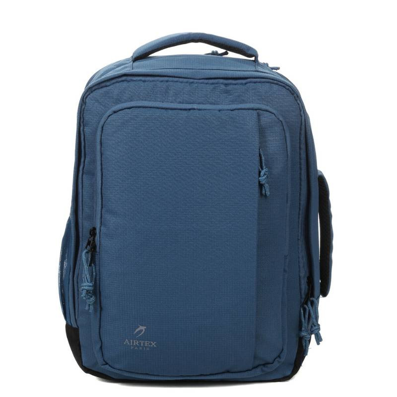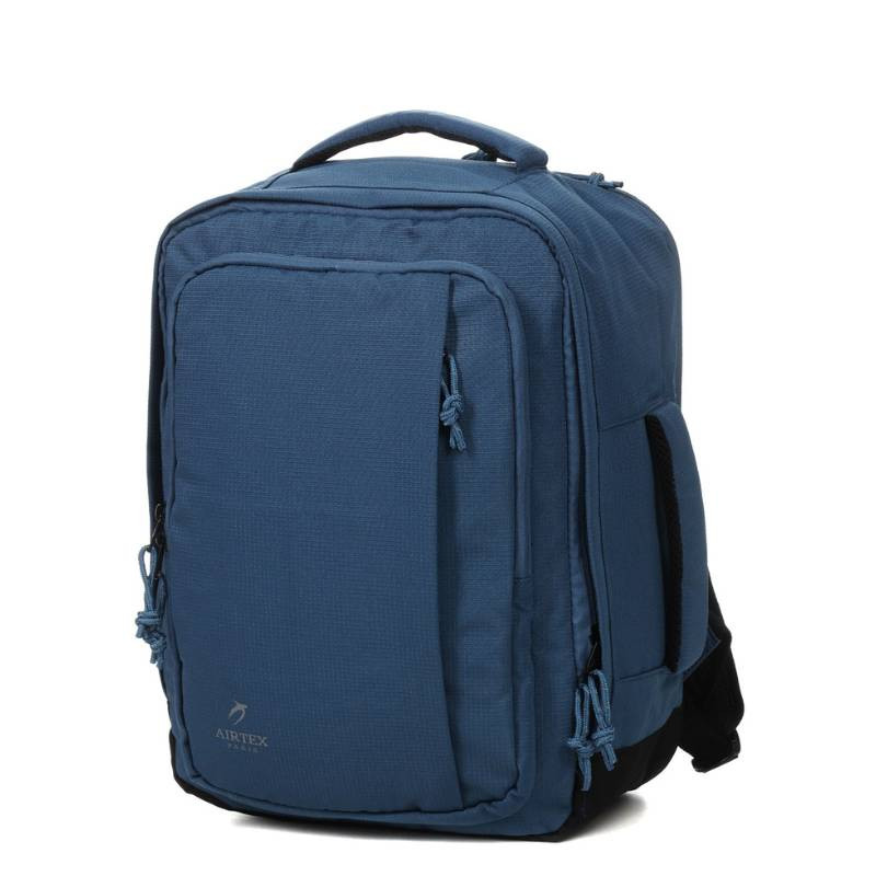 Σακίδιο πλάτης της Γαλλικής εταιρείας Airtexσε σιέλ χρώμα, είναι ιδανικό για ταξίδια με αεροπλάνο, να το έχετε μαζί σας στην καμπίνα, για ολιγοήμερα ταξίδια άλλα και για καθημερινή χρήση. Διαθέτει ειδικό ενισχυμένο χώρο για laptop έως 15 ίντσες και έναν χώρο για tablet. Έπισης έχει ξεχωριστό χώρο με ιμάντες για ρούχα. , διαθέτει μια πλαϊνή τσέπη από πλέγμα για ένα μπουκάλι νερού ή μια μικρή ομπρέλα. Επίσης έχει μια κάθετη μπροστινή τσέπη για αντικείμενα που θέλετε να έχετε άμεση πρόσβαση. Κατασκευασμένο από ανθεκτικό και ελαφρύ ύφασμα πολυεστέρα, προσφέρει άνεση στη μεταφορά με ενισχυμένους ιμάντες και πολλαπλές λαβές. Επιπλέον, το συμπαγές μέγεθός της είναι αποδεκτό ως χειραποσκευή από τις περισσότερες αεροπορικές εταιρείες και μπορεί ακόμη να χρησιμοποιηθεί ως αποσκευή κάτω από το κάθισμα στην EasyJet, ενώ περιλαμβάνει πρακτικές τσέπες για άριστη οργάνωση και εξάρτημα για μεταφορά σε βαλίτσα τρόλεϊ για εύκολη μετακίνηση.