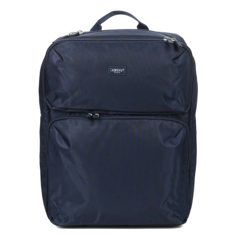 Σακίδιο πλάτης της Γαλλικής εταιρείας Airtex σε μπλέ χρώμα, συνδυάζει κομψό σχεδιασμό και πρακτικότητα, αποτελώντας ιδανική επιλογή για καθημερινή χρήση και ταξίδια. Διαθέτει άνετο και ελαφρύ σχεδιασμό, με ενισχυμένη πλάτη και ιμάντες ώμου, καθώς και αδιάβροχο ύφασμα. Ο κύριος χώρος χωρά έγγραφα και φακέλους A4 ή ρούχα για ένα ολιγοήμερο ταξίδι, ενώ διαθέτει ενισχυμένη εσωτερική θήκη για φορητό υπολογιστή έως 15". Επιπλέον, υπάρχει μια τσέπη με φερμουάρ από πλέγμα, ιδανική για καλώδια και φορτιστές. Στο εξωτερικό, δύο μπροστινές τσέπες παρέχουν αποθήκευση για αξεσουάρ και απαραίτητα αντικείμενα που θέλετε να έχετε σε άμεση πρόσβαση. Διαθέτει εξάρτημα για μεταφορά σε βαλίτσα τρόλεϊ. Είναι επίσης αποδεκτή ως αποσκευή κάτω από το κάθισμα από πολλές αεροπορικές εταιρείες (EasyJet, AirFrance, Ryanair, κ.λπ.)