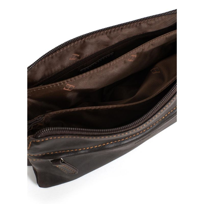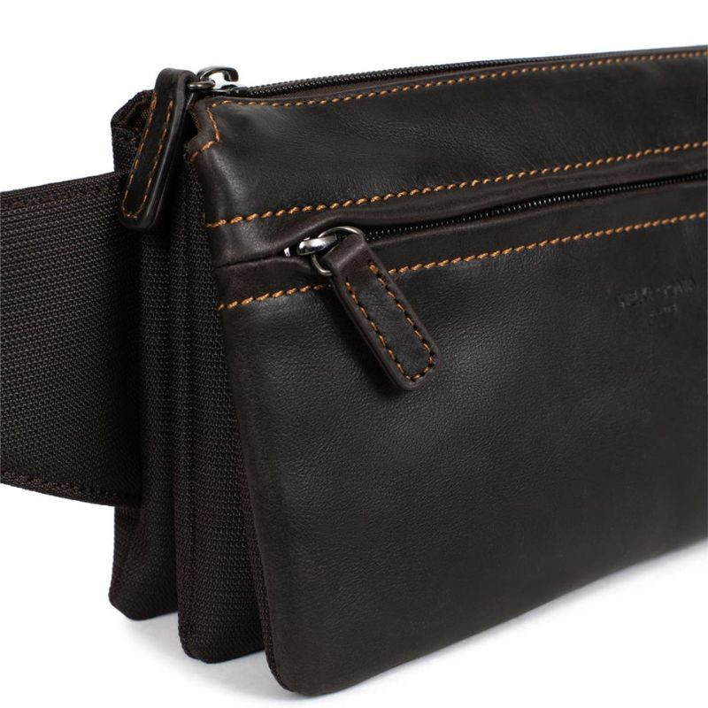 Τσαντάκι μέσης τριθέσιο σε καφέ ύφασμα με δέρμα 225NO798 - 225798-04