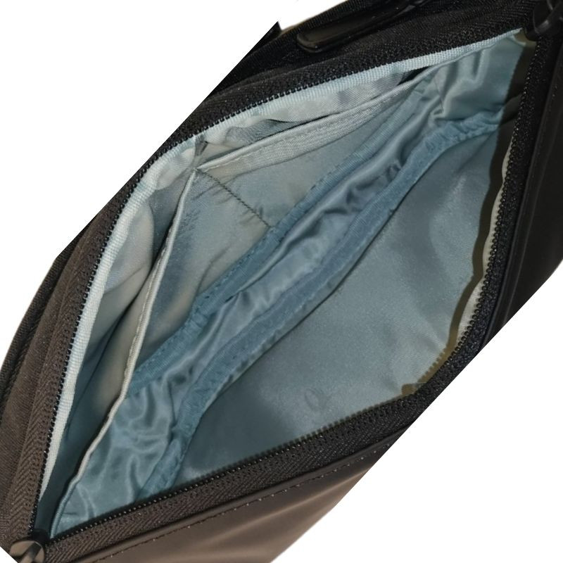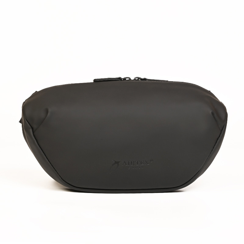 Τσαντάκι μέσης της Γαλλικής εταιρείας Airtex. Είναι κατασκευασμένο από συνθετικό αδιάβροχο υλικό σε μαύρο χρώμα, ιδανικό για καθημερινή χρήση. Διαθέτει έναν ευρύχωρο κύριο χώρο και μία πρακτική βοηθητική τσέπη στο πίσω μέρος για γρήγορη πρόσβαση σε απαραίτητα αντικείμενα. Στο εσωτερικό του κύριου χώρου υπάρχουν δύο θήκες, για το κινητό τηλέφωνο και άλλα μικροαντικείμενα. Ανθεκτικό, λειτουργικό και διακριτικό, προσφέρει άνεση και πρακτικότητα σε κάθε μετακίνηση.