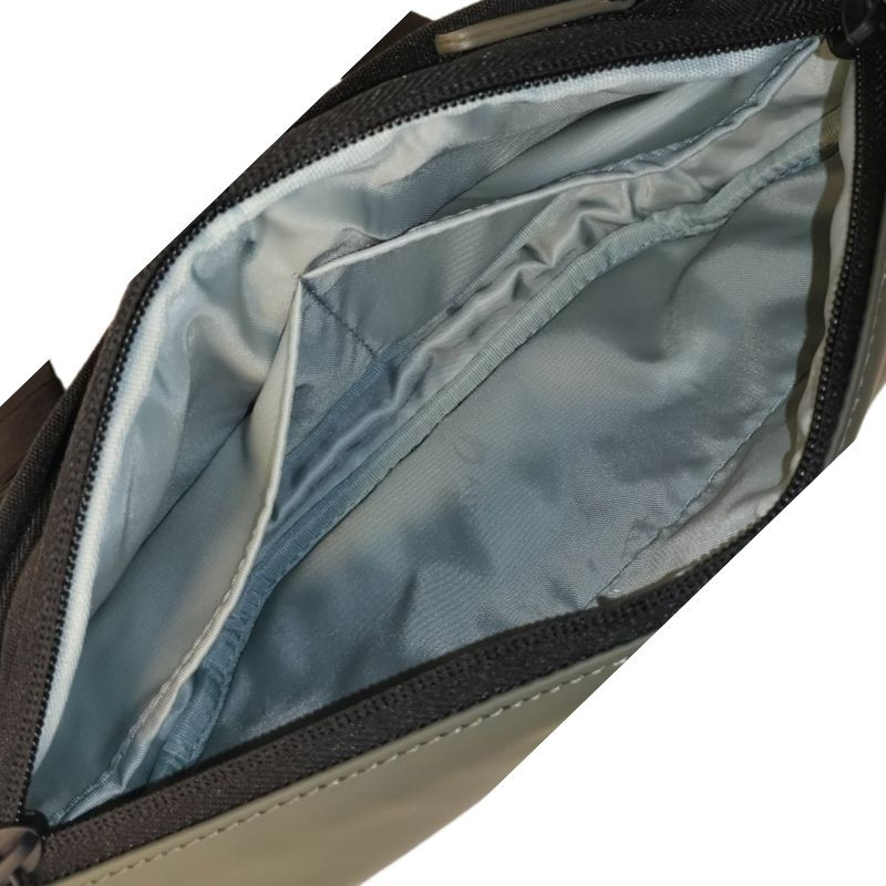 Τσαντάκι μέσης της Γαλλικής εταιρείας Airtex. Είναι κατασκευασμένο από συνθετικό αδιάβροχο υλικό σε λαδί χρώμα, ιδανικό για καθημερινή χρήση. Διαθέτει έναν ευρύχωρο κύριο χώρο και μία πρακτική βοηθητική τσέπη στο πίσω μέρος για γρήγορη πρόσβαση σε απαραίτητα αντικείμενα. Στο εσωτερικό του κύριου χώρου υπάρχουν δύο θήκες, για το κινητό τηλέφωνο και άλλα μικροαντικείμενα. Ανθεκτικό, λειτουργικό και διακριτικό, προσφέρει άνεση και πρακτικότητα σε κάθε μετακίνηση.
