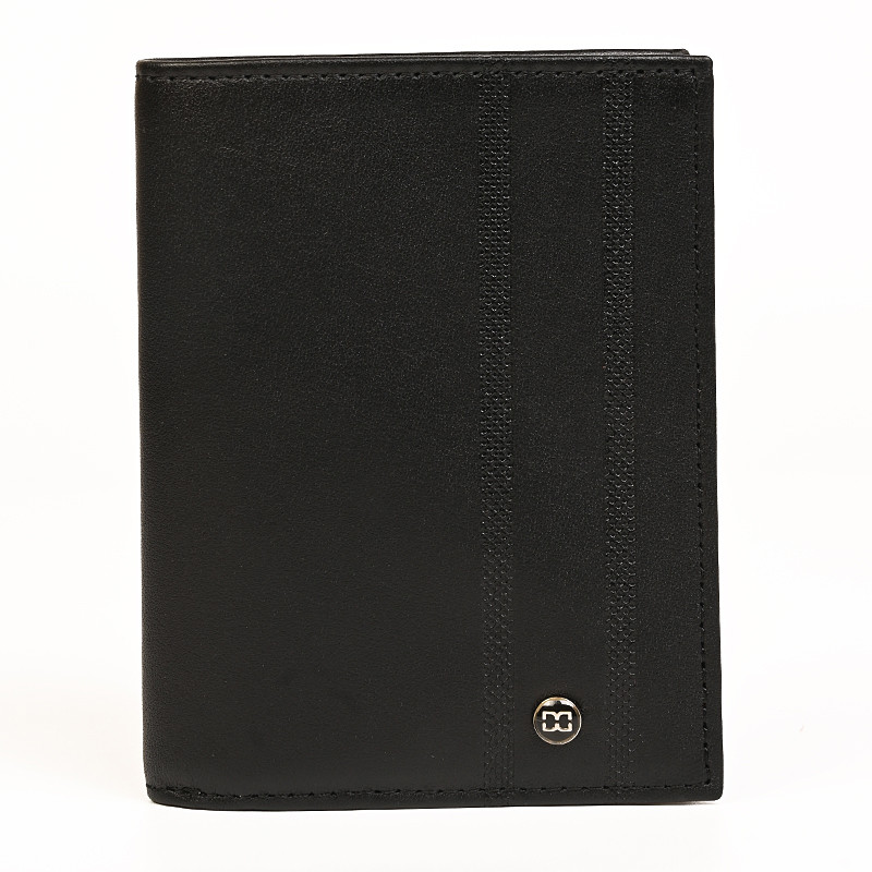 Κομψό και πρακτικό όρθιο πορτοφόλι με διαστάσεις 10 x15 x 2 εκ,  κατασκευασμένο από γνήσιο δέρμα σε μαύρο χρώμα. Σχεδιασμένο από την Γαλλική εταιρεία David William, για να συνδυάζει στυλ και λειτουργικότητα, αποτελεί ιδανική επιλογή για την καθημερινή σας οργάνωση. Διαθέτει θήκη για χαρτονομίσματα, επτά θέσεις για κάρτες και μία πρακτική κερματοθήκη που κλείνει με φερμουάρ για τα κέρματα. Επιπλέον, περιλαμβάνει τρείς διαφανείς θήκες κατάλληλες για ταυτότητα (11 x 6,5 εκ), δίπλωμα οδήγησης ή φωτογραφίες, ώστε να έχετε άμεση πρόσβαση στα απαραίτητα έγγραφα. Για ακόμη μεγαλύτερη οργάνωση, το πορτοφόλι διαθέτει μια επιπλέον τσέπη για εισιτήρια, αποδείξεις και άλλα μικροαντικείμενα. Παράλληλα, είναι εξοπλισμένο με τεχνολογία προστασίας δεδομένων RFID, που συμβάλλει στην ασφάλεια των καρτών σας. Ένα διαχρονικό αξεσουάρ από δέρμα που συνδυάζει κομψότητα, ποιότητα και ασφάλεια στην καθημερινότητά σας.