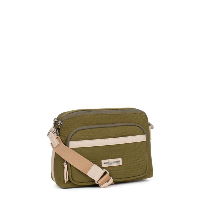 Τσάντα χιαστί διθέσια από αδιάβροχο υλικό σε λαδί χρώμα 303OVE03 - 30303-25