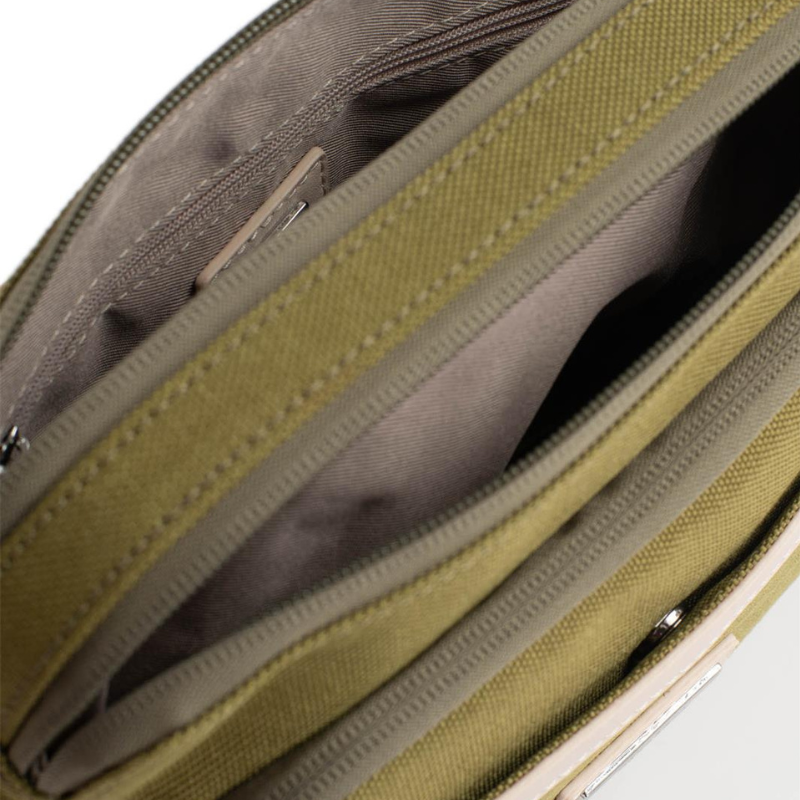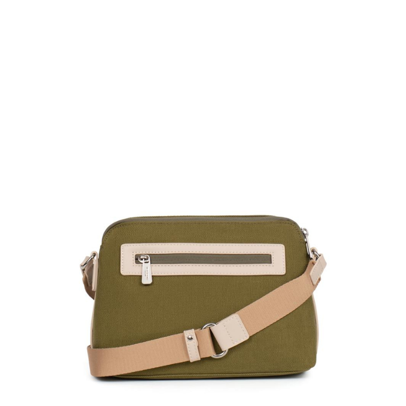 Τσάντα χιαστί διθέσια από αδιάβροχο υλικό σε λαδί χρώμα 303OVE03 View larger