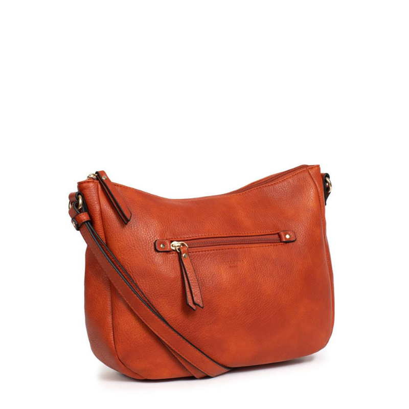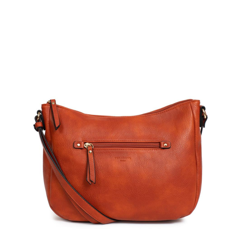 Κομψή και πρακτική γυναικεία τσάντα χιαστί από τη Γαλλική εταιρεία Hexagona, ιδανική για καθημερινή χρήση. Κατασκευασμένη από συνθετικό υλικό σε πορτοκαλο-ταμπά χρώμα, συνδυάζει στυλ και λειτουργικότητα. Στο εσωτερικό της διαθέτει ενδιάμεση τσέπη με φερμουάρ που χωρίζει την τσάντα σε δύο ίσους χώρους, ιδανική για πορτοφόλι κλειδιά κ.α. Επιπλέον, περιλαμβάνει μία τσέπη με φερμουάρ και θήκη για κινητό ή άλλα μικροαντικείμενα. Εξωτερικά, διαθέτει δύο πρακτικές τσέπες μπροστά και πίσω, που κλείνουν με φερμουάρ για άμεση πρόσβαση σε απαραίτητα αντικείμενα. Διαθέτει ρυθμιζόμενο λουρί για κράτημα στον ώμο ή χιαστί. Μια ιδανική επιλογή για γυναίκες που θέλουν άνεση, οργάνωση και κομψότητα σε κάθε τους εμφάνιση.