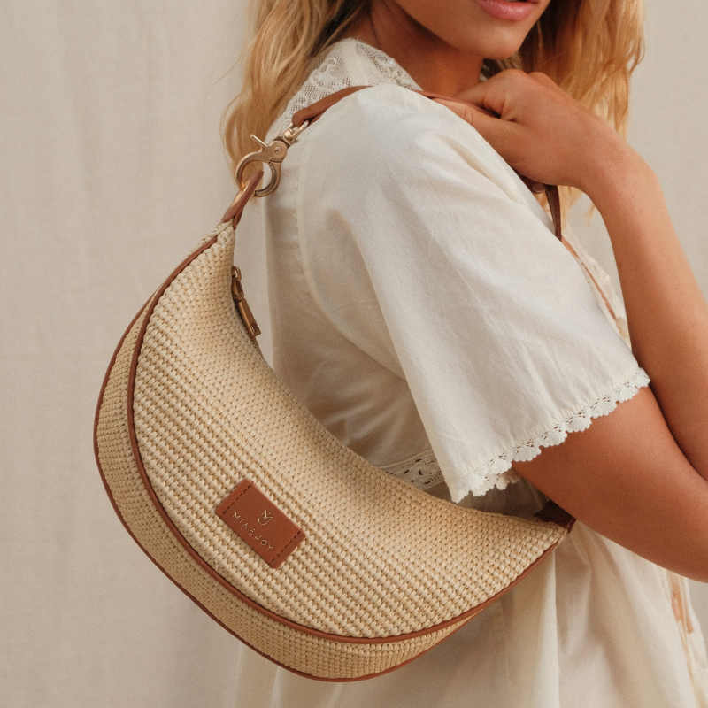 Κατασκευασμένη από εξαιρετικής ποιότητας ψάθα, η τσάντα MIAJOY διακρίνεται για την ανθεκτικότητα και το ανάλαφρο design της.