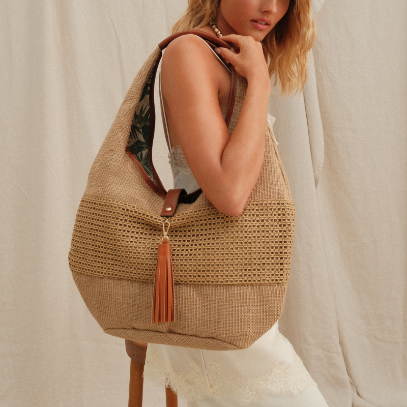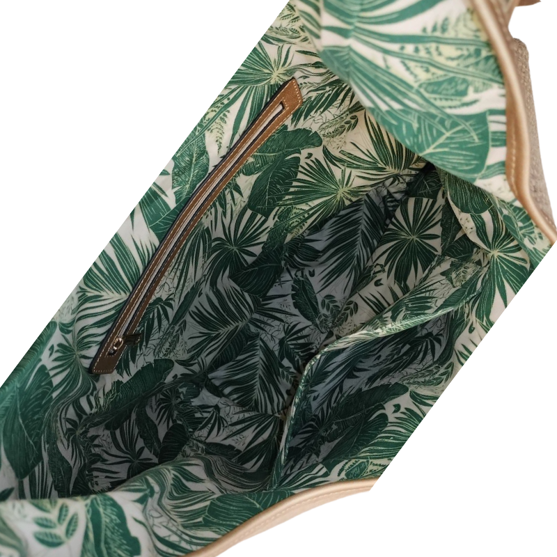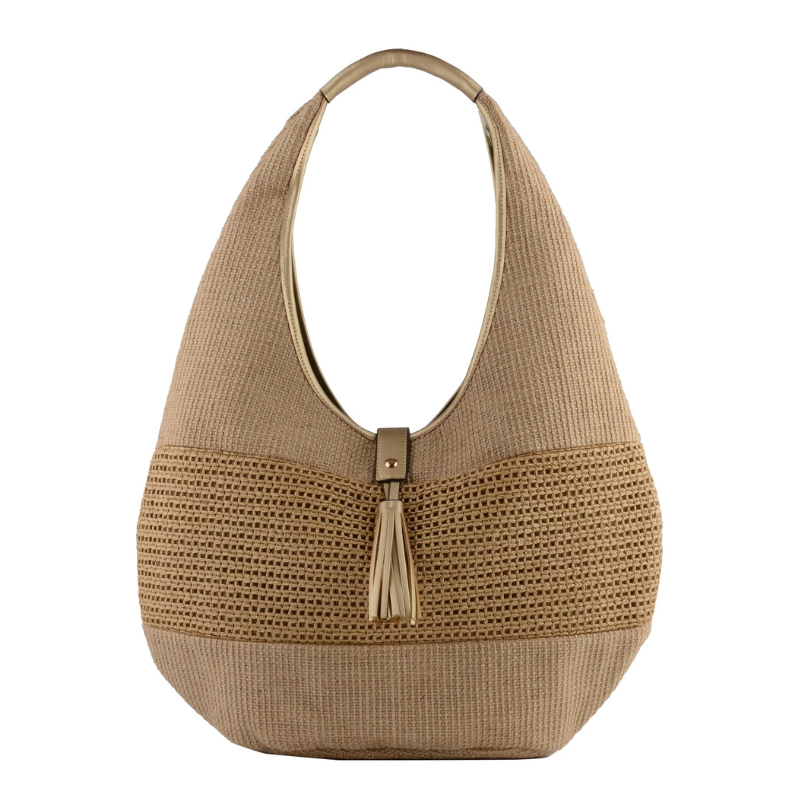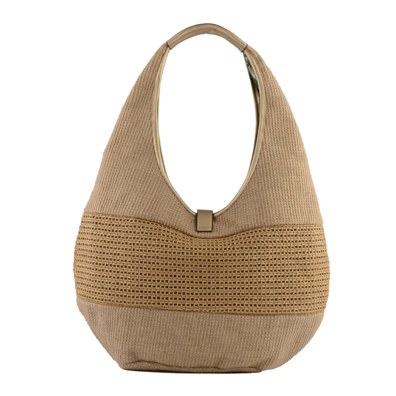 Η τσάντα ξεχωρίζει για τις high-end λεπτομέρειες από χρυσό συνθετικό υλικό, που προσδίδουν μια glam νότα στο φυσικό υλικό της ψάθας. Τα μεταλλικά στοιχεία σε χρυσό φινίρισμα ολοκληρώνουν τον σχεδιασμό, καθιστώντας την ιδανική τόσο για τις πρωινές σας βόλτες στην πόλη όσο και για τις καλοκαιρινές σας αποδράσεις.